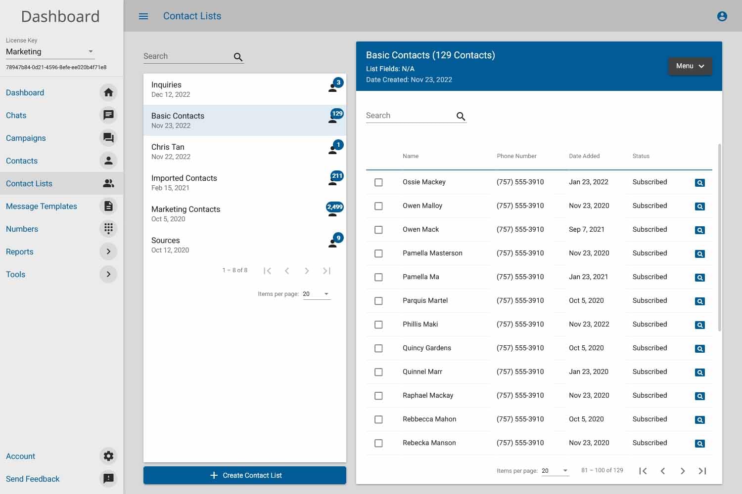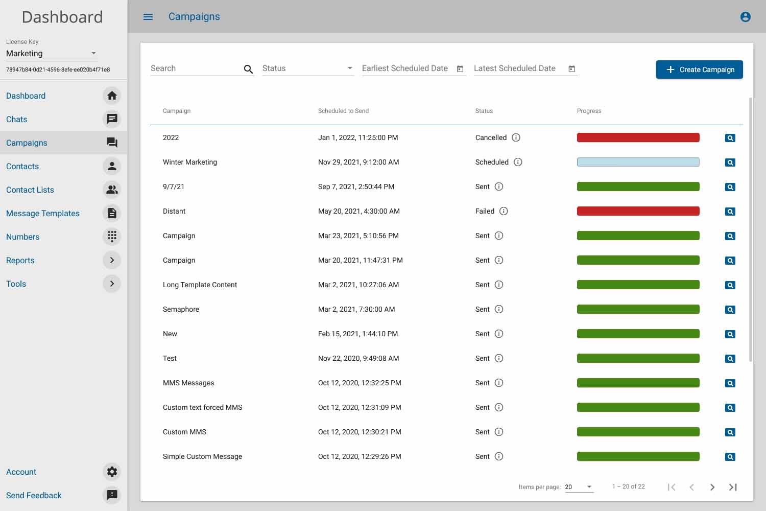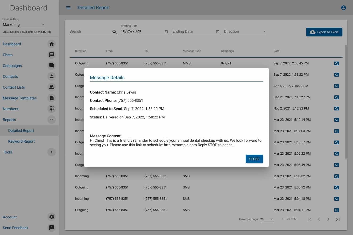 Review detailed reports of campaigns with the ability to drill down to message fragments sent to a single contact.